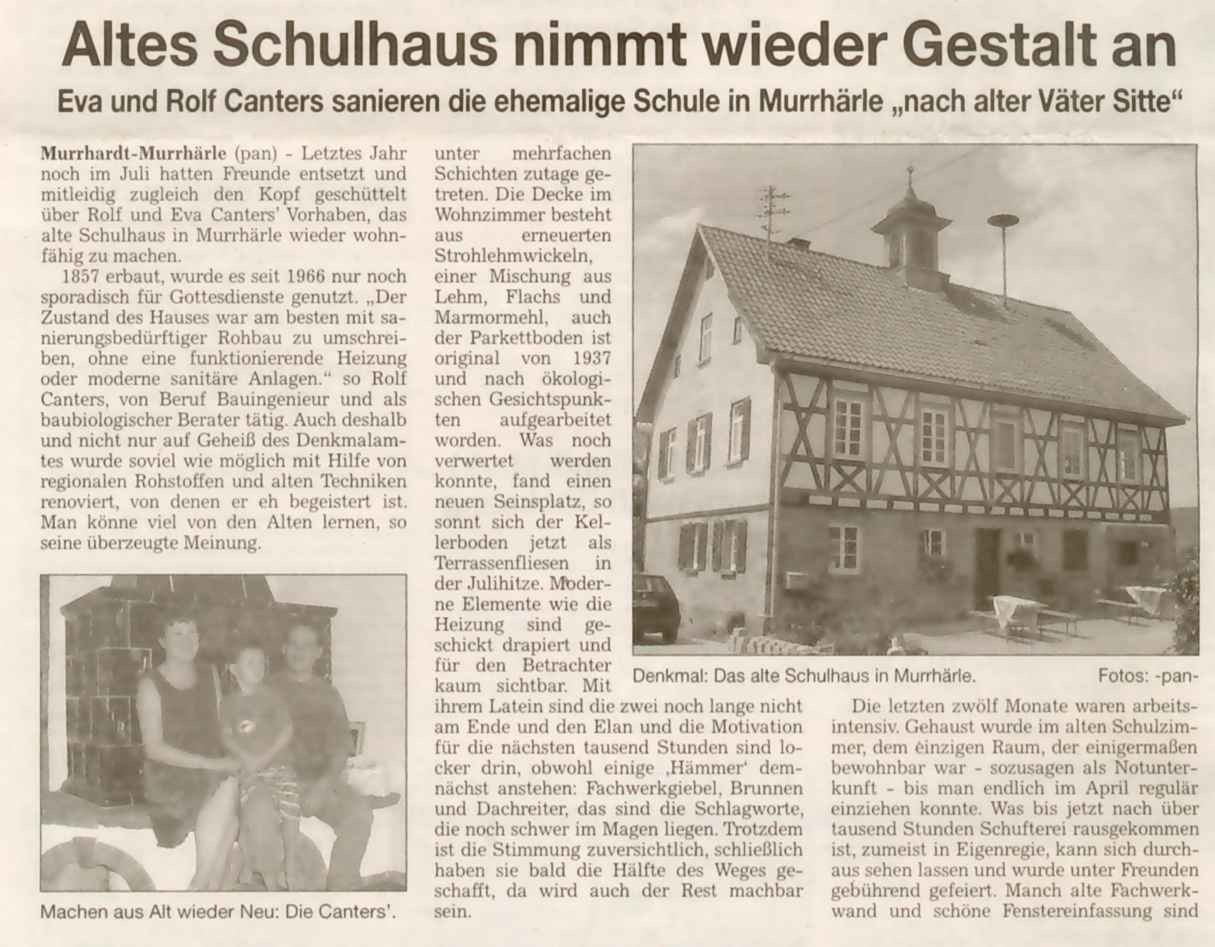 Rolf Canters Alte Schule Murrhärle 6 Telefon/Fax: 07192-93 54-93/-95 |